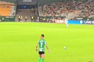 安東尼準備喝水時球隊發起進攻,立馬扔了水瓶,隨后助攻隊友破門