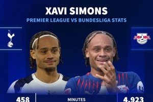 水土不服?西蒙斯德甲每90分鐘參與0.69球,登陸英超7場聯賽僅1助