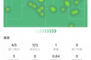 賴因德斯本場數據:助攻雙響,2射1正,3次關鍵傳球