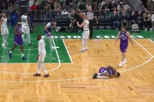 有點危險!布朗撲防后手撩陰小基昂特 裁判給普通犯規(guī)后者3罰全中