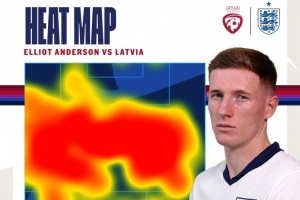 此役埃利奧特-安德森踢滿全場,幫助英格蘭取勝。英格蘭隊社媒曬出埃利奧特-安德森本場比賽的熱區圖片,這位中場球員的覆蓋范圍極大。