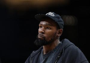全場比賽,杜蘭特出戰(zhàn)47分鐘,16投9中,三分球4中0,6罰5中得到23分9板3助的數(shù)據。