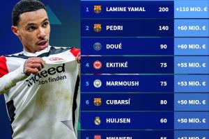 體育資訊06月23日訊 德國足球轉會市場近日分別列出了2024/25賽季中,身價增長/下跌最多的十名球員,亞馬爾增長1.1億歐排名榜首,福登則下跌5000萬歐,成為身價下跌最多的球員。