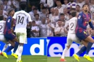 身體層面,皇馬強(qiáng)于巴薩,這在拼搶高空球和身體對(duì)抗中體現(xiàn)明顯。米利唐跑動(dòng)中從巴爾德腳下斷球、巴爾韋德多次與拉什福德一對(duì)一較量成功,都是典型的畫(huà)面。最糟的是1-2的那次失球:孔德被維尼修斯突破,巴爾德在跳躍爭(zhēng)頂中被貝林厄姆壓制,庫(kù)巴西又在另一回合的高空球爭(zhēng)奪中失位,貝林厄姆最終得以輕松射門。德容被赫伊森分散了注意力,放任貝林厄姆完成了完成射門。在1-0的那次進(jìn)攻中,貝林厄姆也輕松擺脫佩德里,一路深入后找到姆巴佩完成射門。