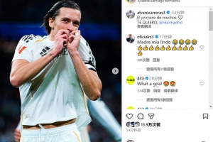 卡雷拉斯曬親吻隊徽照片:很多進球中的第一個,我愛皇馬!