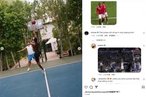 梅努社媒曬出多張生活照,其中包括打籃球跳投的照片,動作看起來非常瀟灑。