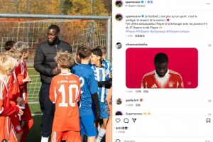 于帕也在今日現(xiàn)身拜仁U13青訓(xùn)營和小球員們進行溝通交流,他也曬出自己的互動照,并配文:“足球不僅僅是一項運動:它還關(guān)乎分享、尊重和激情??很榮幸成為Playse品牌大使,并與拜仁慕尼黑U13球員和Playse攜手共進。”