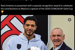 PFA官方表示:“勞爾-希門尼斯獲得了一項特別表彰獎,以紀念他為墨西哥隊贏得2025年中北美及加勒比地區金杯賽冠軍所做出的貢獻?!?/p>