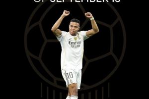 體育資訊11月01日訊 金球獎官方消息,姆巴佩當選金球獎9月份最佳球員。
