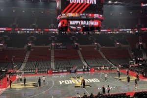 賽前,開拓者跟隊(duì)中文記者Victor Sun分享開拓者主場(chǎng)地板,并寫道:“NBA杯遇上萬(wàn)圣節(jié)。”