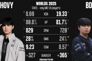 體育資訊11月1日訊 外媒統計Chovy與Bdd數據對比(S15全球總決賽),具體如下: