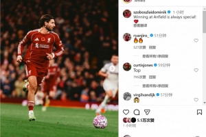 當選隊內最佳!索博社媒慶祝勝利:在安菲爾德取勝總是很特別