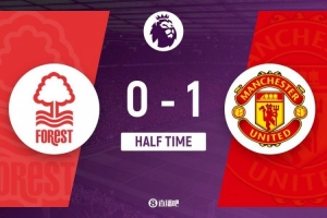 傷停補時3分鐘。上半場比賽結束,諾丁漢森林0-1曼聯。