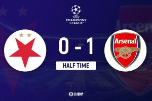 半場-阿森納暫1-0布拉格斯拉維亞 普羅沃德手球送點薩卡點射破門