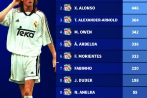 曾效力利物浦、皇馬球員為兩隊總出場次數排行:阿隆索446場第二