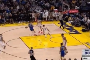 略顯尷尬!庫里弧頂單打出手三分空氣球直接飛出界外
