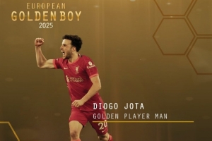 金童獎官方:利物浦前鋒若塔被評為2025金球員獎
