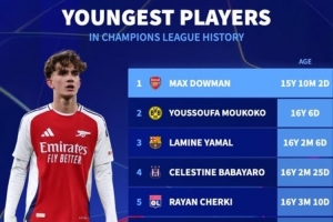 歐冠歷史最年輕出場球員排行:道曼居首,穆科科、亞馬爾二三位