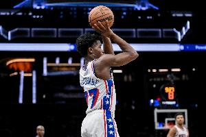 體育資訊11月5日訊 76人半場75-56領先公牛。