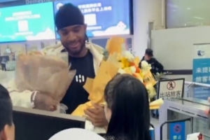 11月4日深夜,山東高速男籃大外援克里斯回到濟南,在濟南遙墻機場受到俱樂部和球迷熱情歡迎。