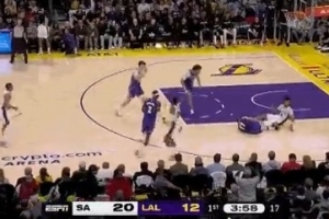 嚇人呀!東契奇試圖反擊被卡斯爾絆倒 摔到地板上賊疼