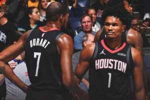 合砍39分14板12助3斷!火箭官方贏球海報封面人物:杜蘭特+阿門