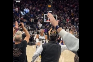 23分16板10助!威少轉(zhuǎn)發(fā)和球迷慶祝圖并配經(jīng)典名言:Why not?!