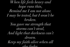 “我也許會被考驗,但不會被打倒。你賜予了我風暴無法奪走的力量,和黑暗無法掩蓋的光明。”