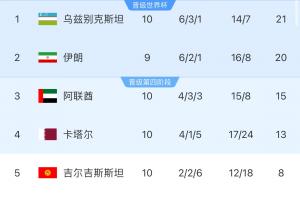 體育資訊06月10日訊 北京時間21:45,世預賽亞洲區第三階段A組兩場收官戰,烏茲別克斯坦3-0戰勝卡塔爾,吉爾吉斯斯坦1-1阿聯酋。