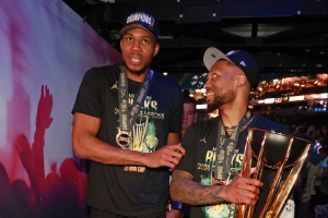 字母哥和利拉德拿過的最大榮譽是本賽季的季中賽冠軍,但是他們本賽季的季后賽就合體了3場。今年3月底利拉德遭遇右小腿深靜脈血栓,在不到一個月的情況下痊愈,并在季后賽首輪對陣步行者的G2中復出。但是在G4,利拉德遭遇左跟腱撕裂,賽季報銷。