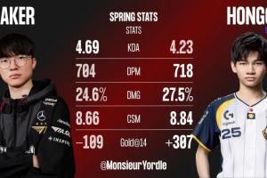 外媒發布兩隊中單Faker vs HongQ數據對比。