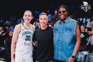 體育資訊7月4日訊 在今天紐約自由人主場89-79擊敗洛杉磯火花的比賽中,NBA名宿納什來到了現場觀戰。而在賽后自由人隊的斯圖爾特以及瓊奎爾-瓊斯都與納什熱情寒暄,而有意思的是在與兩人的合影中,納什反而成為了身高最矮的那一個。