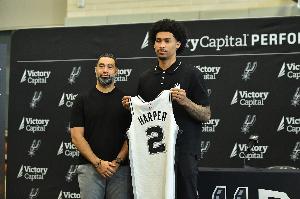??馬刺曬榜眼迪倫-哈珀&14號秀球衣上身照 哈珀身披2號戰袍
