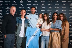 體育資訊06月12日訊 曼城官宣米蘭中場賴因德斯加盟,而他的家庭成員也來到簽約現場,見證這一重要時刻。