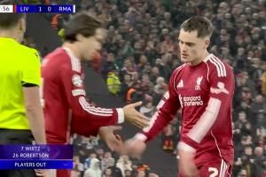 利物浦再做調整,維爾茨、羅伯遜被換下,凱爾凱茲、基耶薩登場