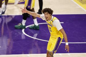 上賽季海斯為湖人出戰(zhàn)56場,場均得到6.8分和4.8籃板,投籃命中率72.2%。