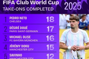 體育資訊7月11日訊 本屆世俱杯僅剩巴黎vs切爾西的決賽,數(shù)據(jù)機(jī)構(gòu)squakwa也統(tǒng)計(jì)了本屆賽事成功過人情況,切爾西3將上榜。