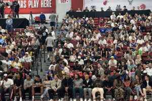 體育資訊7月12日訊 火箭今日在夏聯92-95不敵快船,火箭總經理斯通、主帥烏度卡以及小賈巴里-史密斯、伊森、阿門等人都在場邊觀戰。