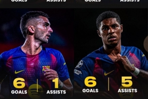 巴薩進(jìn)攻端球員本賽季數(shù)據(jù):拉什福德6球5助、亞馬爾4球5助