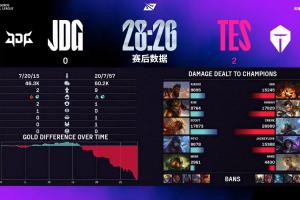體育資訊7月28日訊 今日LPL第三賽段登峰組JDG不敵TES,而第二局賽后官方給出了對局積分榜。而Scout的巖雀在傷害面板上一騎絕塵,為JDG全隊唯一傷害破萬的選手。