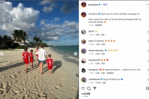 凱恩曬出自己同家人的海邊度假照,并配文:“謝謝大家的生日祝福!??我和家人度過了愉快的時光,在經歷一個美好的假期后感覺精神煥發。”