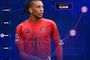奧利塞出自切爾西青訓,在2019年正式從雷丁出道,2020年身價漲到1500萬歐元。加盟水晶宮后,他的身價在2022年穩定在2000萬歐元浮動。但隨著他在2023年開始持續高光,身價暴漲至5000萬歐。而在加盟拜仁后,憑借其穩定而出色的發揮,當前已經漲至1億歐元。