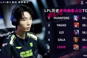 體育資訊8月5日訊 LPL單場傷害占比排名:Huanfeng金克絲占比66.2%第一,Yagao佐伊58.2%占比第二,Uzi韋魯斯占比56.92%第三.
