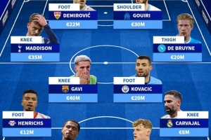 因傷缺席今年剩余比賽陣容:德布勞內、加維、卡瓦哈爾在列