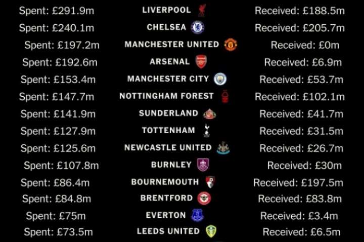 體育資訊08月19日訊 TA統計了截止至8月18日英超各隊的夏窗收支情況,其中利物浦2.9億鎊支出居首 曼聯凈支出1.97億鎊最多。