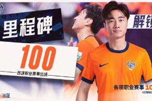 中超聯賽第21輪,青島海??蛨鎏魬鸪啥既爻堑谋荣愔?,海牛球員車世偉完成個人職業生涯各項賽事第100場出場里程碑,恭喜車世偉!