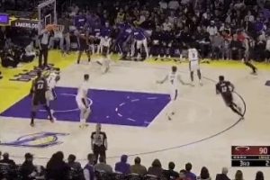 維金斯被逼防到底角&頂倒東契奇但裁判沒吹 直接中投命中!