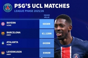巴黎本賽季歐冠對(duì)手身價(jià):