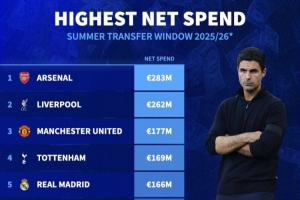 體育資訊9月2日訊 主流聯賽的夏季轉會窗已經關閉,《轉會市場》也統計了今夏凈支出情況,阿森納領銜英超8隊但切爾西并不在列。
