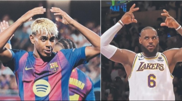 據西班牙媒體《世界體育報》報道,亞馬爾新慶祝的靈感來自NBA球星勒布朗-詹姆斯,LBJ是他的偶像。